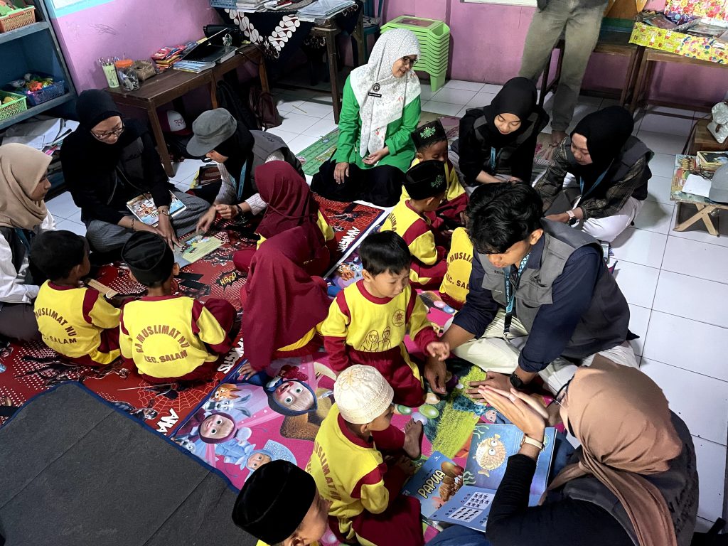 Fokus program kerja unggulan, “Bacakan Saya Buku”, adalah menumbuhkan minat baca melalui storytelling ekspresif dan diskusi singkat. Berbekal dukungan Perpustakaan Nasional RI, mahasiswa memilih buku sesuai usia sehingga materi relevan dan menarik. Pendekatan ini menempatkan anak sebagai pelaku aktif, bukan sekadar pendengar pasif.